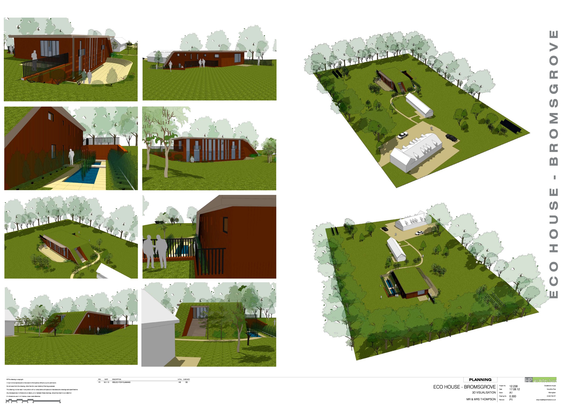 HP architecture was appointed to look at gaining a planning consent for two residential units in Green Belt Land. The principles of design for the proposal have sought to achieve a development with passivhaus principles to achieve zero carbon emissions, with an innovative design which merges with the landscape and topographical features of the site. The buildings are two storey but sunken with an earth bank, sedum roof, timber columns, and full glazing. Planning consent was achieved in March 2015.